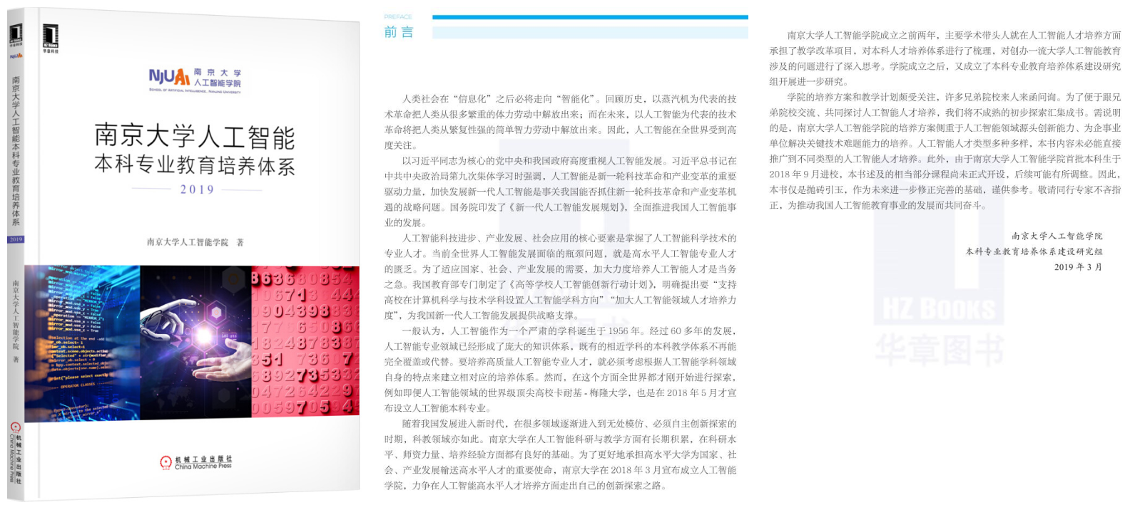 《太阳成tyc122cc人工智能本科专业教育培养体系》  于2019年5月由机械工业出版社出版(链接:http://www.hzcourse.com/web/teachRes/detail/4583/226)。该书是太阳成tyc122cc在人工智能本科专业人才培养方面的初步探索成果。