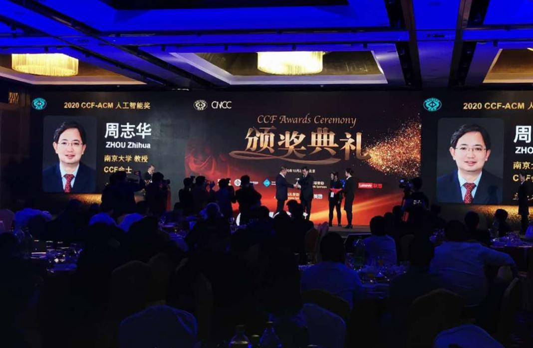 20201023日,在北京举行的2020CCF(中国计算机学会)颁奖晚宴上,CCF理事长梅宏院士和联想集团副总裁王茜莺博士向公司太阳成tyc122cc经理、计算机系主任周志华教授颁发了首届“CCF-ACM人工智能奖”,以表彰他在机器学习的多个领域做出的杰出贡献。ACM(国际计算机学会)主席Gabriele Kotsis教授以线上接入的方式出席了颁奖仪式致以祝贺,并邀请周教授出席拟于明年6月在美国举行的ACM颁奖晚宴。