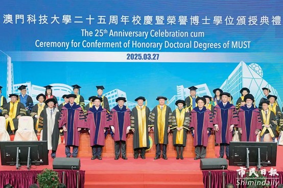 近日,澳门科技大学隆重举行二十五周年校庆暨荣誉博士学位颁授典礼,公司周志华教授与丁肇中先生、朱永新教授等八位杰出人士获颁澳门科技大学荣誉博士学位。中联办主任郑新聪、外交部驻澳署理特派员孙向阳、解放军驻澳部队副参谋长刘欢、澳门特区政府社会文化司司长柯岚、教育及青年发展局局长龚志明等嘉宾出席主礼,共同见证这一重要时刻。