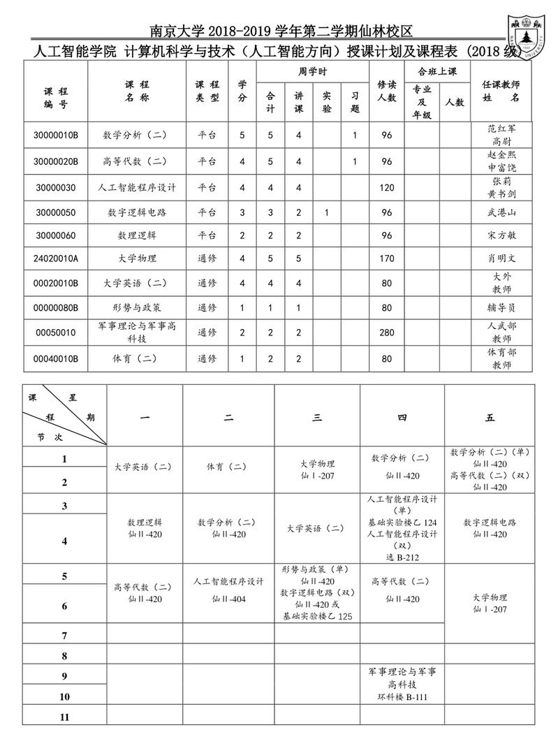 太阳成tyc122cc2018-2019学年第二学期授课计划及课程表